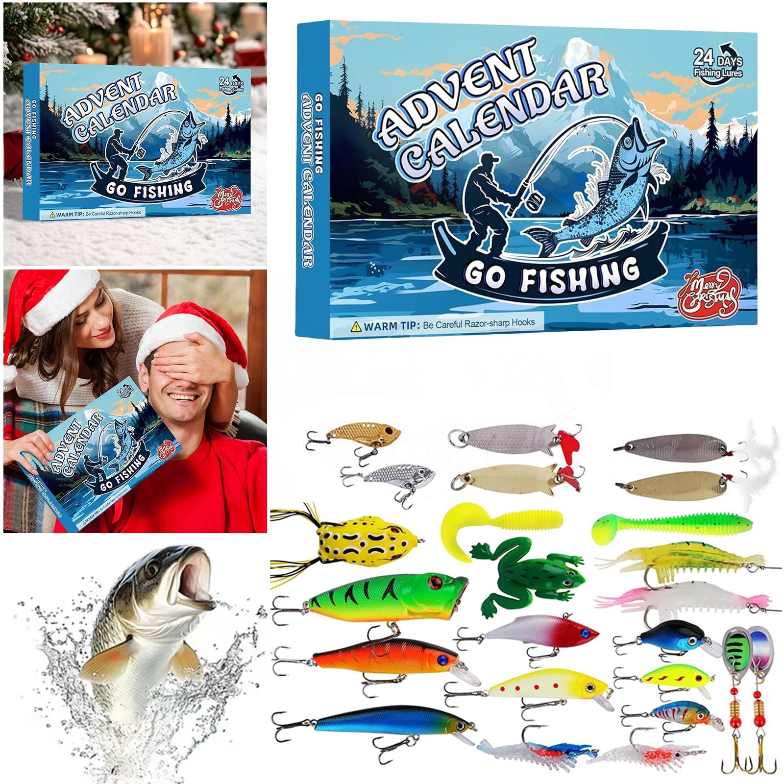 2.Premium Quality Lures: Crafted from high-grade materials, the lures in our fishing christmas advent calendar ensure peace of mind. Equipped with ultra-sharp hooks and realistic fish patterns, they easily attract even the most cautious fish.