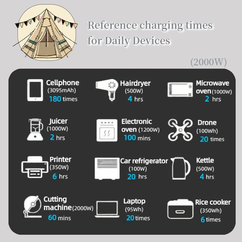 Capacity 6 (AP2000): 2600W/ 2048Wh 640000mAh